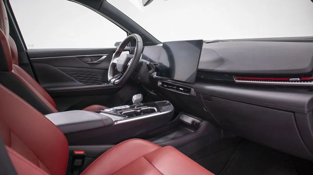 由于拍攝車處于虧電狀態(tài),所以很遺憾我沒有機會體驗到魔方的全液晶儀表以及中央大屏。據(jù)了解,新車配備了AR-HUD,其投影面積可達60英寸,分辨率達到854×420像素,可將儀表、實景導航、輔助駕駛等信息直接在前風擋上投射顯示,實現(xiàn)導航路口指引、駕駛輔助、視頻播放等功能,可有效提升行車安全。