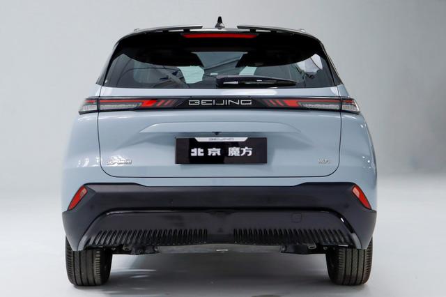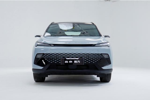 外觀方面,相比傳統(tǒng)的燃油車型,北京汽車魔方的造型并沒有按照“常理”出牌。這款車沿用了北京汽車“大都致美”的家族式設(shè)計(jì)語(yǔ)言,并且衍生出了全新的“鉆石星辰”主題,實(shí)車給人的第一印象并不是一款傳統(tǒng)意義上的燃油汽車。魔方的前臉可以說是這款車最吸睛的部分,封閉式的前格柵搭配上星空格柵的造型,營(yíng)造出極強(qiáng)的未來(lái)科技感。分體式大燈的設(shè)計(jì)很符合當(dāng)下年輕消費(fèi)者的審美,而貫穿式造型的日間行車燈也十分犀利,具有極高的辨識(shí)度。